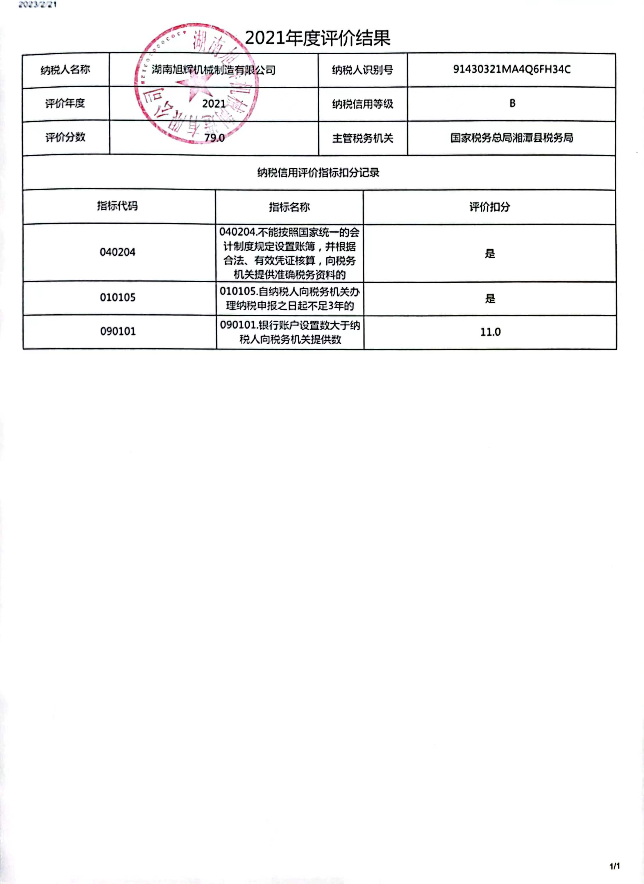 企業(yè)納稅信用等級報告:
