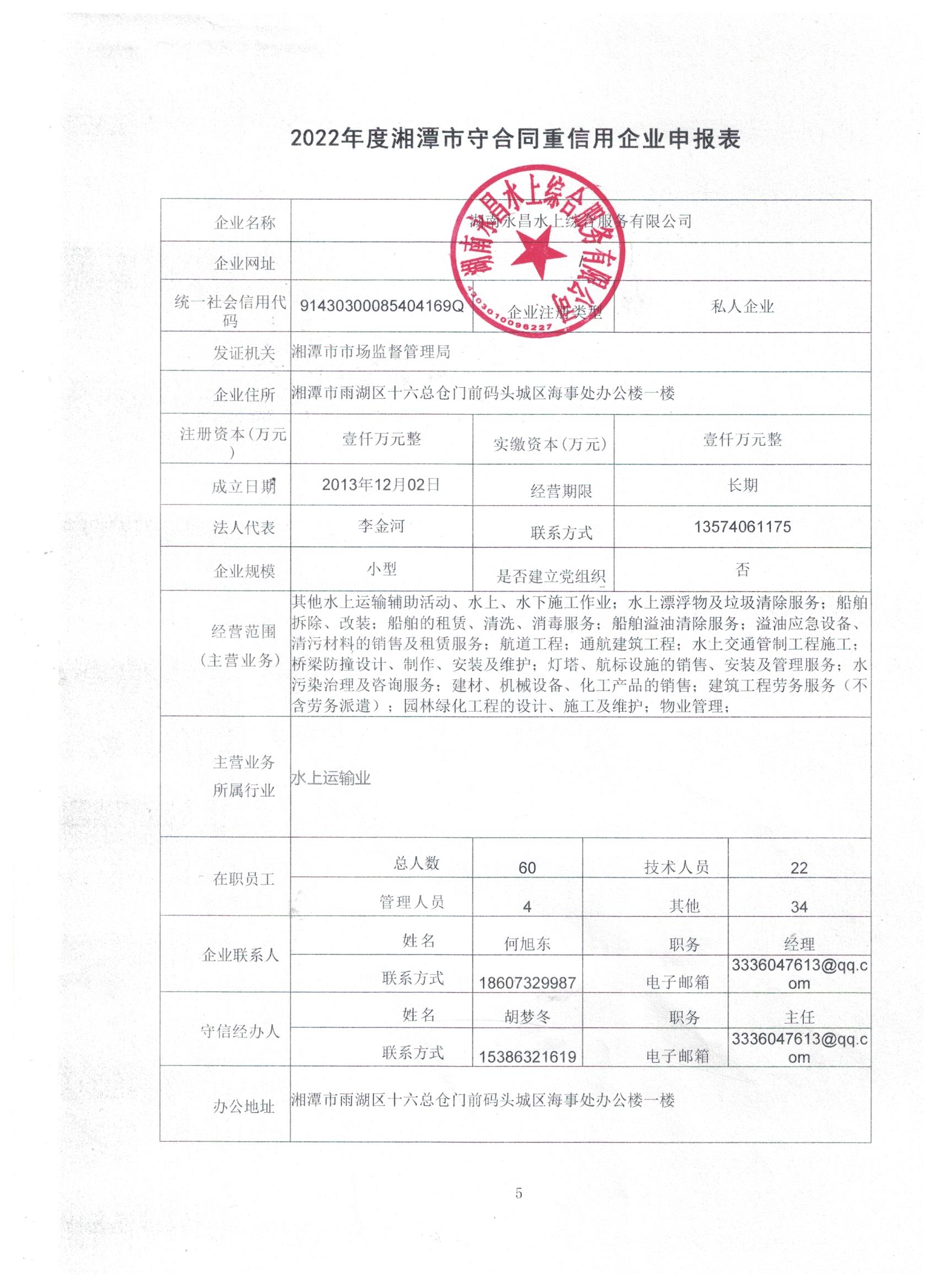 本企業(yè)根據(jù)《湘潭市守合同重信用企業(yè)申報規(guī)定》等編制 2022 年度企業(yè)信用報告書,并保證本報告書內(nèi)容真實、準(zhǔn)確、完整。