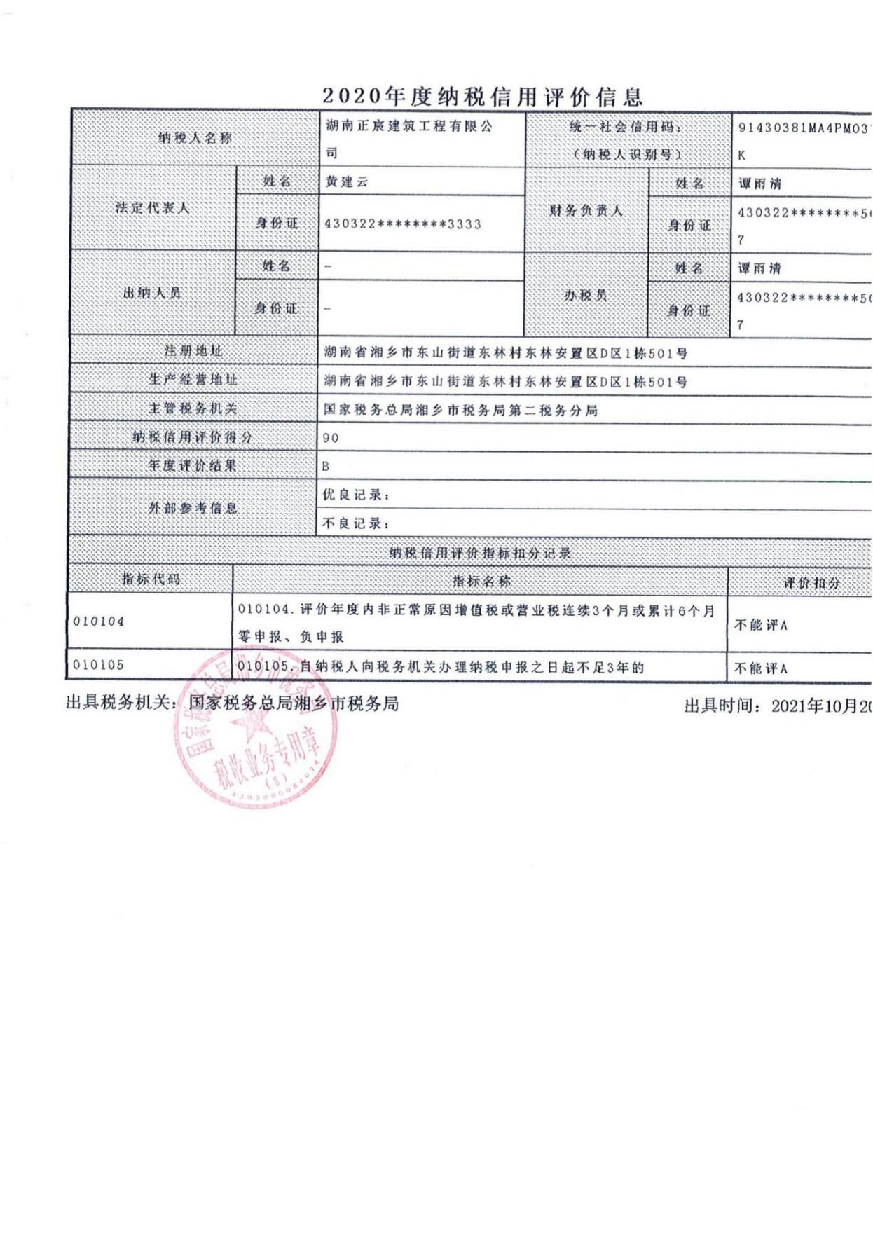 企業(yè)納稅信用等級報告: