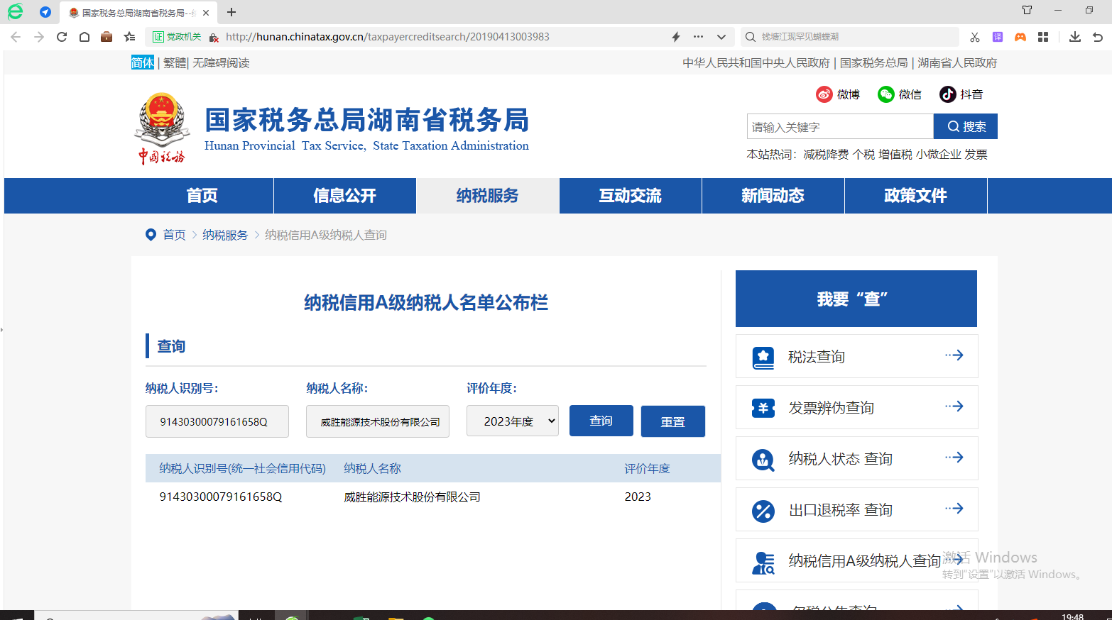 企業(yè)納稅信用等級報告: