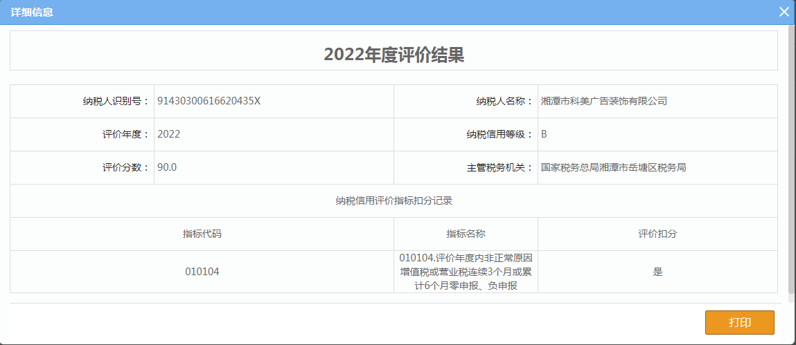 企業(yè)納稅信用等級報告: