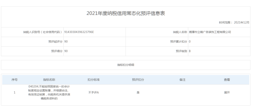 企業(yè)納稅信用等級報告: